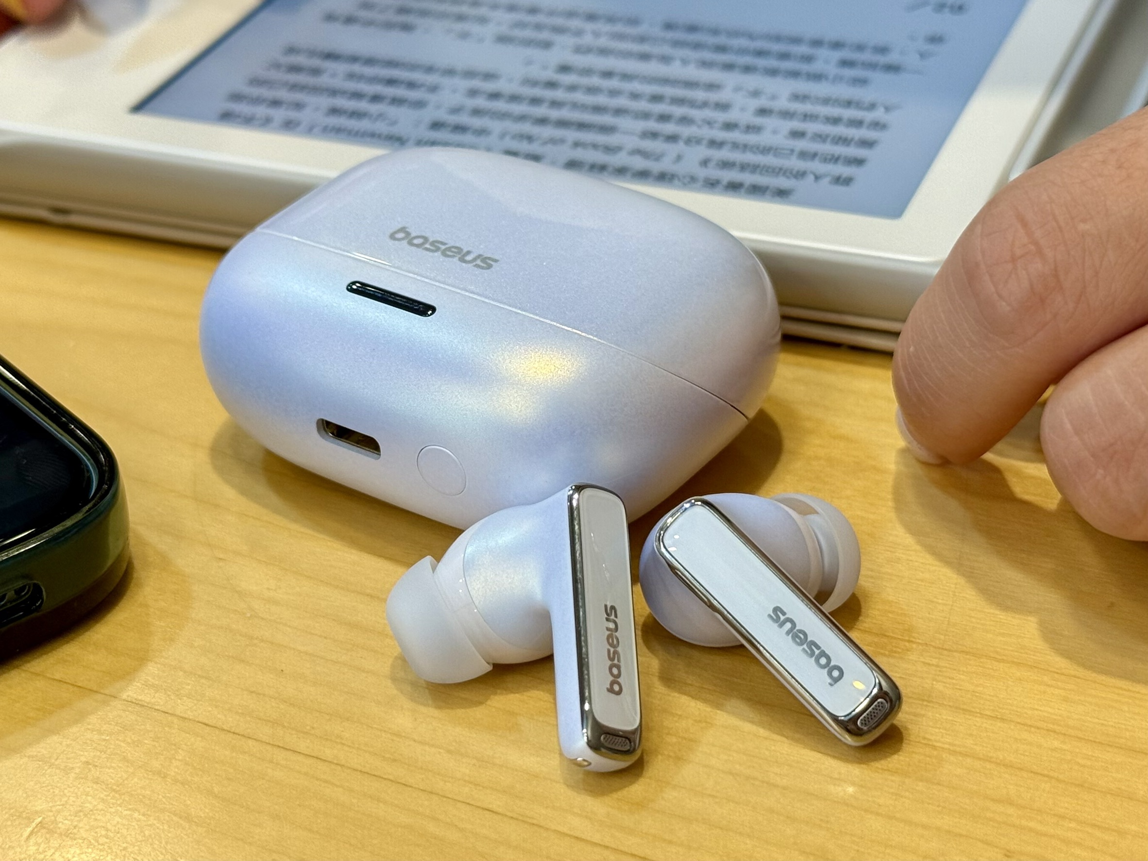 倍思M2s Pro是一款以通勤降噪為主的高階藍芽耳機,外型亮麗且有高級感,耳機及充電盒拿在手中都有一定的份量感,很明顯感覺得到用料精緻、做功扎實。